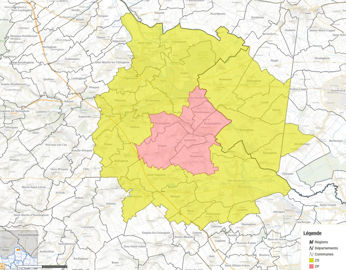 Cette zone de protection est complétée par une zone de surveillance de 10 kilomètres qui s’étend sur le Pas-de-Calais et sur le Nord. Les communes du Pas-de-Calais concernées sont Allouagne, Ames, Annezin, Béthune, Bourecq, Burbure, Calonne-sur-la-Lys, Chocques, Ecquedecques, Gonnehem, Guarbecque, Ham-en-Artois, Hinges, Isbergues, Labeuvrière, Lambres, Lapugnoy, Lespesses, Lestrem, Lières, Lillers, Locon, Lozinghem, Mazinghem, Mont-Bernanchon, Norrent-Fontes, Oblinghem, Saint-Floris, Saint-Hilaire-Cottes, Saint-Venant (au nord de la D937), Vendin-lès-Béthune. Celles situées dans le département du Nord sont Haverskerque, Merville, Morbecque, Steenbecque et Thiennes.