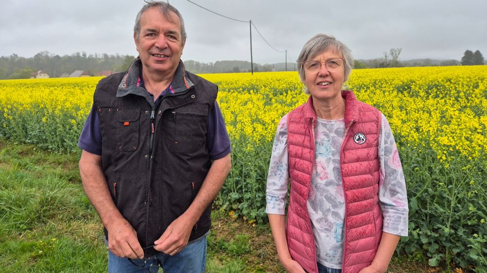 « Ici, rien n’est plat. » À Mooslargue, dans le sud du Haut-Rhin, il suffit de jeter un regard autour de soi pour se convaincre que l’affirmation de Régine et Dominique Wolfer colle au terrain. Les champs accusent de 2 à 8-9 % de pente. « Même si en 2022 une coulée de boue n’a pas provoqué de gros dégâts, l’érosion liée à des événements climatiques de plus en plus aléatoires est un sujet concret », constate le couple.