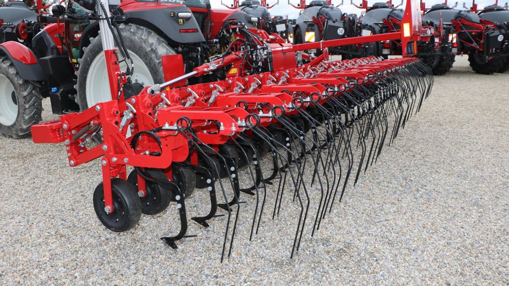 L’appareil est pourvu du contrôle de sections et peut donc relever chaque élément indépendamment en bout de champ. En option, les socs sont dotés de carbure pour allonger leur durée de vie. Les éléments peuvent également recevoir des herses, placées derrière les dents, ou des tôles de bordures pour éviter les projections de mottes et de pierres sur le rang.