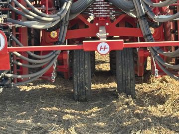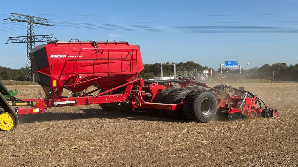 Pour atteindre cette largeur, Horsch a repensé la conception de l’outil. Ainsi, le semoir et la herse rotative constituent des unités totalement indépendantes dotées d’un essieu de transport en propre. Pour se mettre en configuration de transport, le packer à pneus se décale hydrauliquement sous la herse repliée. Les deux roues additionnelles situées sous la herse rotative servent uniquement pour le transport et déplacent le centre de gravité de la machine afin d’annuler le report de charge.