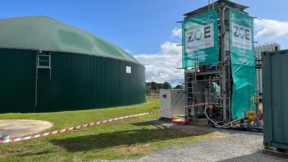 « Le cœur de l’innovation est ce liquéfacteur de CO2 qui représente peut-être une partie de l’avenir de la méthanisation : valoriser à la fois le méthane et le dioxyde de carbone », souligne Mauritz Quaak. Mise en service au début de septembre, l’unité ZOE (Zéro Off-gas Emission) de valorisation du CO2 issu de la méthanisation est le premier site pilote à l’échelle industrielle. Développée par l’entreprise Gazfio, cette unité a pour but de capter 100 % des émissions de méthane et de CO2 produites par la méthanisation agricole.