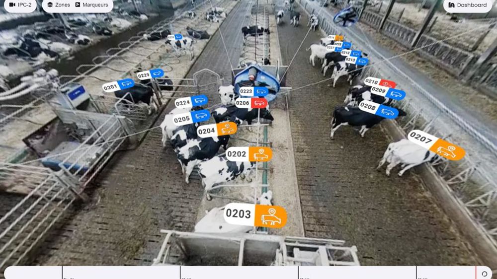Pour la surveillance au pâturage, la société Copeeks mise sur Peek’Ture, un outil conçu pour garder un œil sur les vaches jusqu’aux parcelles les plus éloignées. Les images collectées et traitées par IA permettent de connaître en temps réel les zones occupées par les animaux, les températures ressenties ou de mesurer la consommation d’eau aux abreuvoirs. Chaque heure, un cliché et une courte vidéo grand angle sont capturés et analysés, offrant un suivi précis des animaux.