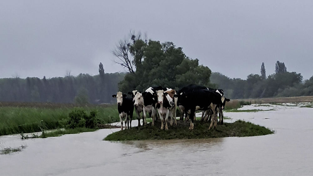 « Surtout, ces inondations arrivent à un très mauvais moment pour les éleveurs, insiste l’élu. Une partie seulement des ensilages ont été récoltés. Dans les prairies de fonds de vallée, faire les foins sera impossible. Les fourrages sentent la vase, et sont inconsommables par les bêtes. Les animaux ont dû être rentrés par endroits. Certaines cultures de printemps qui venaient à peine de sortir de terre sont compromises, avec le risque de voir les graines pourrir. »