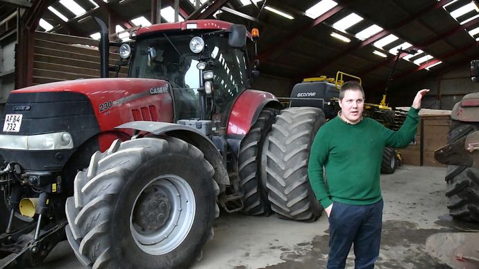 La ferme de Frank Keinicke Nielsen est une « ferme danoise traditionnelle », soutient une Danoise en visite sur l’exploitation. À 34 ans, il exploite seul 340 hectares de cultures (blé, seigle, colza, pois et épinards) à l’ouest de l’île de Seeland, à Ruds Vedby. Il forme un jeune à temps plein sur la ferme. Son père, à la retraite, l’aide pendant la période des récoltes. En agriculture conventionnelle, il opte pour une utilisation raisonnée des pesticides et engrais. Cela passe d’abord par l’équipement GPS d’un tracteur. « Avec ça, je sais où ma culture est bonne et où je n’ai pas besoin de fertilisants. Les satellites me permettent de savoir quels plants ont besoin d’engrais », explique-t-il devant son tracteur.