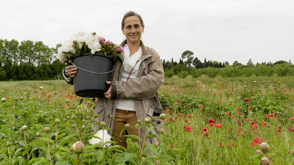 Les pivoines forment de jolies boules de pétales bien serrés et parfumés. Agnès Benoit est floricultrice — la troisième génération dans sa famille — et amandicultrice au Mas Benoit, à Saint-Rémy-de-Provence (Bouches-du-Rhône). Après une reconversion professionnelle, elle cultive cinq variétés de pivoines odorantes, précoces ou tardives, sur 3,5 ha de terres familiales. Elle a planté un millier de pieds, et cueille les fleurs depuis 2016, pour les vendre directement aux particuliers. La professionnelle a rejoint il y a six mois le Collectif de la fleur française (1) qui défend le principe d’une production locale de saison, pour une consommation locale.