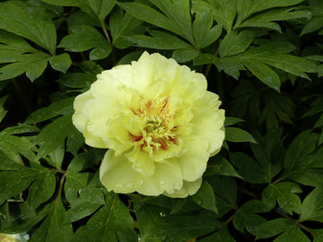 Au milieu du siècle dernier, l’obtenteur japonais Toichi Itoh parvint à croiser une pivoine herbacée avec une pivoine arbustive créant ainsi les pivoines Itoh aux fleurs de taille spectaculaire — plus de 20 cm de diamètre pour certaines — et aux pétales nacrés. Leur élégant feuillage découpé est bien plus durable que celui des variétés herbacées dont elles ont la rusticité et la stature (entre 70 et 90 cm de hauteur).