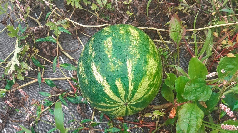 À la mi-mai, installez vos plants dans une terre bien enrichie en compost mûr. Prévoyez un trou assez large et formez une cuvette autour du plant pour pouvoir arroser copieusement. La pastèque demande, en effet, beaucoup d’eau.
