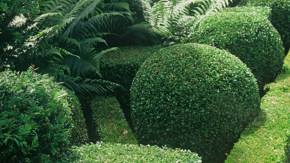 Il est temps de tailler votre buis en boule pour lui redonner une belle forme. Pour cela, pas besoin de gabarit. Coupez, avec une cisaille à main bien aiguisée, une calotte horizontale de quelques centimètres de diamètre en haut, puis une bande horizontale au milieu de la sphère (« équateur ») en vous plaçant au-dessus du buis. Taillez ensuite la demi-sphère supérieure les lames inclinées vers le bas en vous guidant avec les parties déjà taillées en haut et en bas.