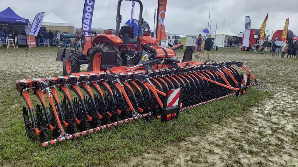 Afin d’étendre son offre de matériels dédiés au désherbage mécanique, Kubota sort une houe rotative RH. Allant de 3 à 6,40 m, l’outil reprend le châssis en H de la gamme désherbage de la marque japonaise. Fixé dessus, chaque élément comporte deux roues étoiles en fonte moulée, apportant plus de poids et une meilleure résistance. Ces étoiles travaillent avec le dos de la cuillère, ce qui évite les projections mais aussi facilite le travail dans les terres à cailloux, évitant que ces derniers ne se coincent entre les dents.