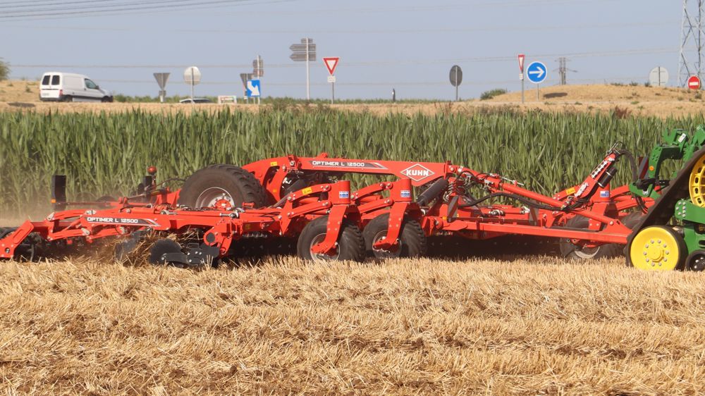 Kuhn étend sa gamme de déchaumeurs à disques Optimer L et XL. Le modèle Optimer L 12500 travaille sur 12,5 m. Il n’est disponible qu’en version L, donc avec des disques de 510 mm et un rouleau double U. Kuhn a développé cet outil à destination des exploitations qui souhaitent réduire le tassement des sols en établissant des voies de passages fixes dans les champs, selon le principe du CTF.
