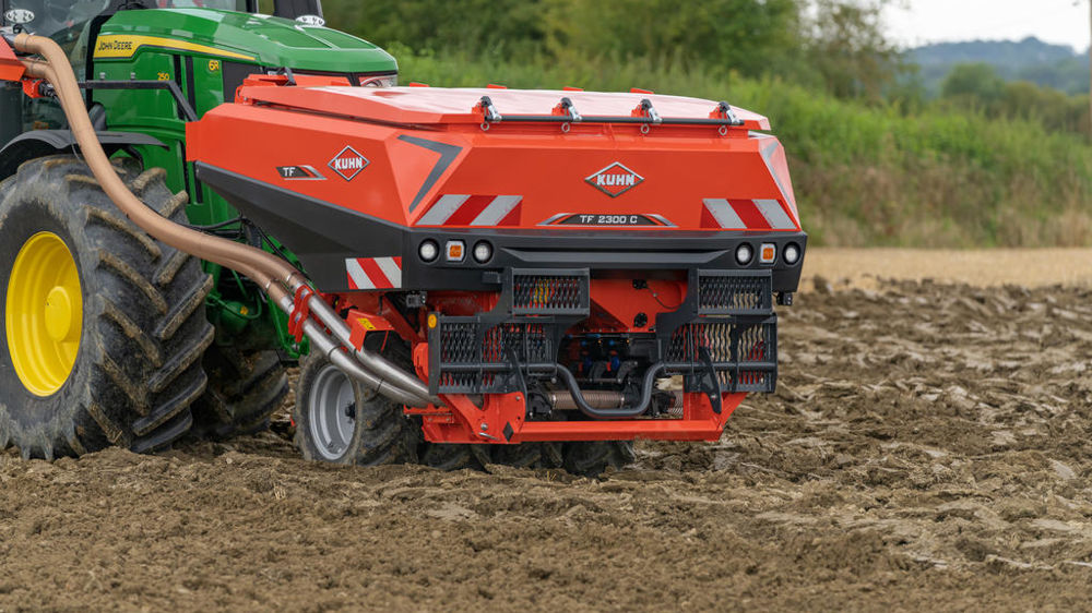 Kuhn introduit la trémie frontale TF 2 300 C, un modèle de 2 360 litres. Elle arrive en complément de la TF 1512, munie d’une simple cuve de 1 500 litres. Cette nouvelle TF se démarque par une cuve cloisonnée en deux parties, dotée d’une répartition 60/40. Elle peut ainsi recevoir deux produits, comme une semence et un engrais.