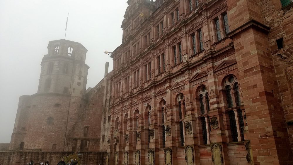 La cité est surtout connue pour les ruines de son immense château. Construit au XIIIe siècle, il a été agrandi plusieurs fois. A la fin du XVIIIe siècle, l’énorme ensemble a été détruit par les guerres. Aujourd’hui, les ruines de grès rouge, parmi les plus romantiques du monde, se dressent sur le versant nord de la colline qui domine la ville, le Königsthul, au milieu des forêts. Dans ses caves, trône le Grosses Fass, un énorme tonneau. Dans l’enceinte du château, un beau musée de la pharmacie met en scène l’évolution de la pharmacopée, de la Renaissance à nos jours.