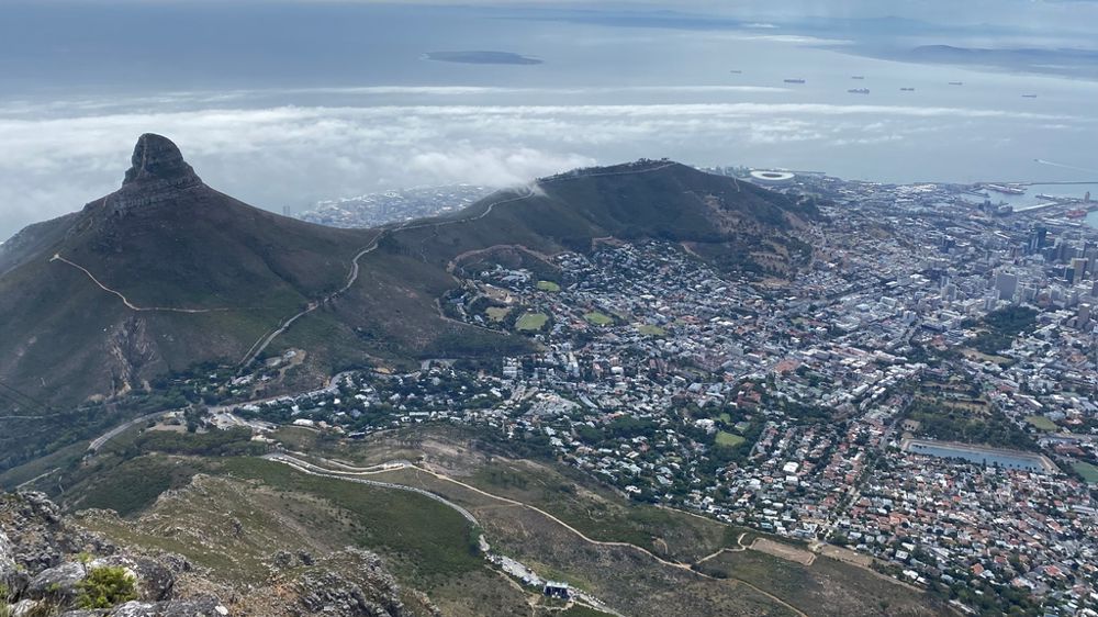 Lorsqu’il arrive en haut de la montagne, ses yeux plongent sur Cape Town et la côte atlantique. Il aperçoit également plusieurs cols montagneux, tels que la tête de Lion à l’ouest et le pic du Diable à l’est. En se promenant sur le sommet, qui fait partie d’un parc national protégé, il découvre certaines des 1 400 espèces de plantes à fleurs présentes et croise facilement la faune indigène, notamment des damans des rochers (1), des mangoustes ou des lézards.