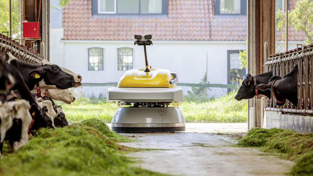 Contrairement au Juno qui suit une route préétablie, le Juno Max est totalement autonome et peut circuler dans différents bâtiments. Il utilise un scanner laser lidar, l’odométrie et une carte virtuelle de l’élevage pour naviguer et planifier de lui-même la meilleure route. La caméra stéréo et le scanner laser multifonctionnels intégrés ne se contentent pas de mesurer le volume de fourrage à l’auge, ils peuvent également détecter les obstacles. En combinant la carte virtuelle, la caméra et le scanner, Juno Max peut trouver un nouvel itinéraire et accomplir sa tâche de manière autonome.