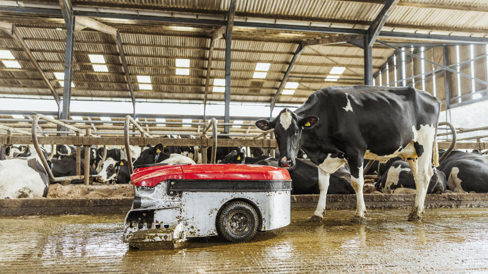 Il fonctionne en aspirant la matière plutôt que de pousser le lisier. Il pulvérise de l’eau à l’avant pour une meilleure absorption des déjections, puis à l’arrière pour un sol humide et propre avec une meilleure adhérence. Son format compact lui permet de circuler facilement entre les vaches et sous les barrières de séparation.