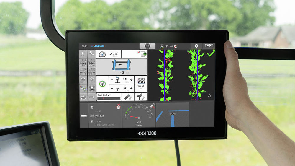 Avec son logiciel iQblue Weeder, Lemken intègre le pilotage complet d’une bineuse, y compris l’image de la caméra et le relevage des éléments, dans un système Isobus et à l’affiche sur le terminal CCI 800 ou 1200.