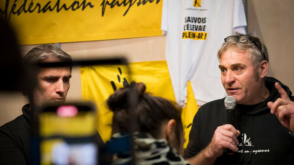 A l’issue de la conférence, la Confédération paysanne a organisé une manifestation contre l’accord, dans les allées du salon. Elle se mobilisera aussi le 14 octobre, à Paris.