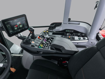 La cabine a été revue avec un espace augmenté de 30 %. Elle bénéficie désormais d’une suspension pneumatique. Les habitués de la marque remarqueront immédiatement le nouvel environnement de conduite avec un accoudoir multifonction qui embarque toutes les fonctions du tracteur. En plus de la molette LDrive de pilotage précis de la transmission, Lindner propose un petit joystick. Il offre la possibilité de commander la boîte plus confortablement pour la conduite qui ne nécessite pas de réglages fins, par exemple au transport. L’accoudoir embarque des palettes de type « bout des doigts » pour le pilotage des distributeurs électrohydrauliques. Ces derniers peuvent également être actionnés avec le joystick multifonction. Enfin, un terminal de 10'' prend désormais place en bout d’accoudoir.