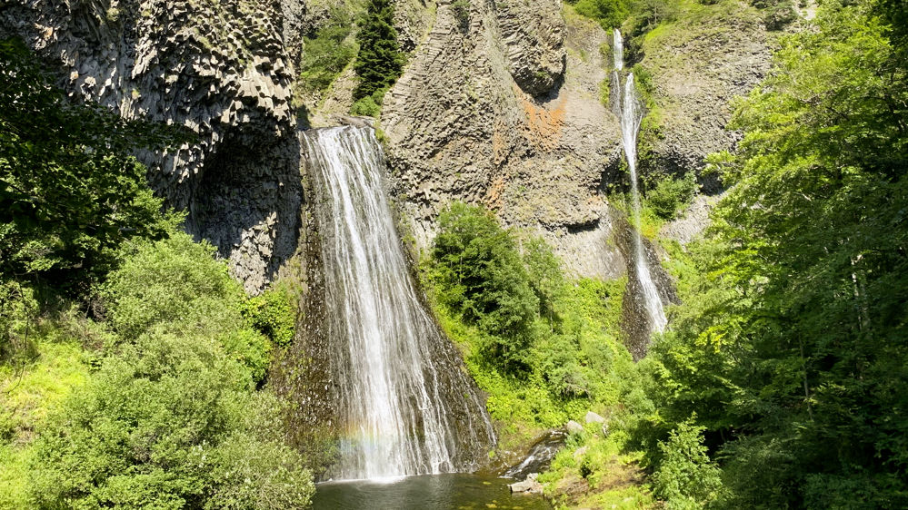 Il est agréable de se promener sous les arbres pour rejoindre la cascade du Ray-Pic, située à Péreyres au cœur du Parc naturel des Monts d’Ardèche, à 1 000 m d’altitude. La rivière Bourges jaillit au milieu d’orgues basaltiques noires formées il y a plusieurs milliers d’années par le volcan Ray-Pic. C’est l’une des plus longues coulées de lave en France. Elle s’étend sur 20 kilomètres.