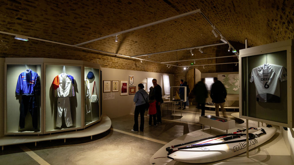 Dans le donjon du château qui surplombe la rade, deux cents objets, allant des vieilles pagaies en bois jusqu’à un foil en carbone, témoignent de l’évolution technologique. Des tenues d’athlètes y sont également présentées aux côtés d’affiches anciennes et de petites embarcations. Pas loin, les véliplanchistes en compétition s’entraînaient au port du Moulin Blanc, près de la plage où les nageurs peuvent travailler leur crawl tout l’été…