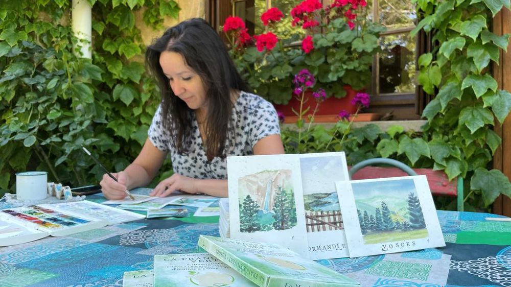 Fille d’agriculteurs et passionnée de randonnées, Mathilde sillonne la France pour puiser son inspiration. En parallèle de son activité d’infirmière, elle peint les symboles et paysages de France depuis presque trois ans. « J’ai sélectionné mes coups de cœur pour en faire des compilations “La France en Vert”, composées de cinq paysages par département », explique l’aquarelliste.