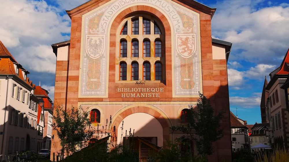 Au XIVe siècle un esprit nouveau souffle sur l’Europe. À mi-chemin entre les centres intellectuels de l’Italie et des Pays-Bas, Sélestat, au cœur de l’Alsace, joue un rôle essentiel. Son école latine devient très réputée, formant des centaines d’élèves. De cette riche époque, Sélestat conserve un témoignage essentiel, un ensemble de 460 manuscrits, 550 incunables (1) et 6 400 ouvrages imprimés entre le XVe et le XVIe siècle.