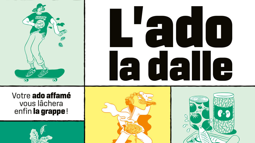 Sur un ton que le lecteur affectionnera ou au contraire détestera, les auteurs du livre « L’ado la dalle » viennent à la rescousse des parents qui aimeraient que leurs enfants, souvent affamés, prennent leur autonomie en cuisine. Stéphanie Antoine et Pauline Beauvais y proposent 75 recettes gourmandes pour changer des sempiternelles pâtes. Ces plats sont classés selon différents profils d’adolescents (du pré-ado à l’adolescent, en passant par l’ado « flemme » ou sportif). Avec humour, les auteurs répertorient 24 situations rencontrées dans les familles avec ados : boum, j’ai la dalle, cuisine avec l’IA, etc.