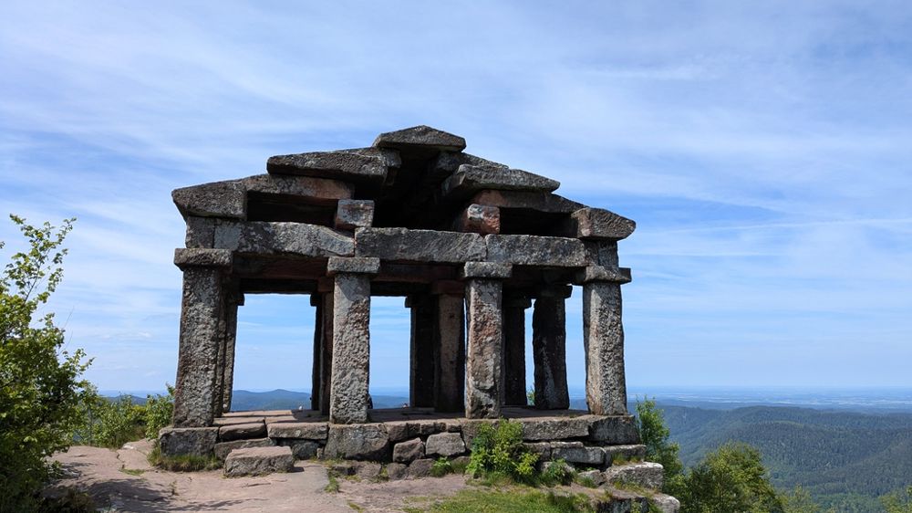 Son aura mystique s’est renforcée à l’époque celte et perdure encore aujourd’hui. D’où le choix d’y ériger un temple, en 1869, réplique d’un sanctuaire gallo-romain du IIIe siècle. Pour accéder au sommet du Donon, il suffit de se garer à son pied, en arrivant par la RD 932. Puis un sentier de 2,5 km y mène en une petite heure. Ce chemin parfois abrupt, parsemé de gros rochers, nécessite d’être bien chaussé. Tout en haut, une vue impressionnante sur les immenses massifs forestiers des Vosges, sur la vallée de la Bruche, attend les marcheurs.