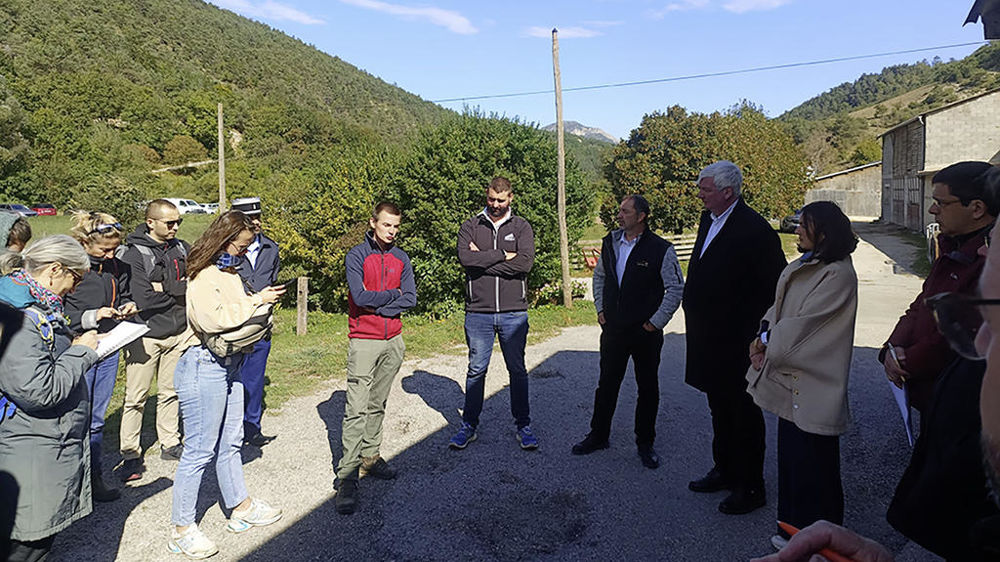 C’est à Saint-Nazaire-le-Désert, sur son exploitation, qu’Alexis Beynet, jeune éleveur de 23 ans installé avec ses parents depuis trois ans, a accueilli une trentaine de personnes pour parler du délicat sujet de la prédation. Avec plus de 500 brebis victimes de la prédation depuis 2010 sur l’exploitation familiale, et cinq attaques survenues en 2024, Alexis a fait part de son épuisement et de son agacement au préfet référent du plan national loup, Jean-Paul Célet.
