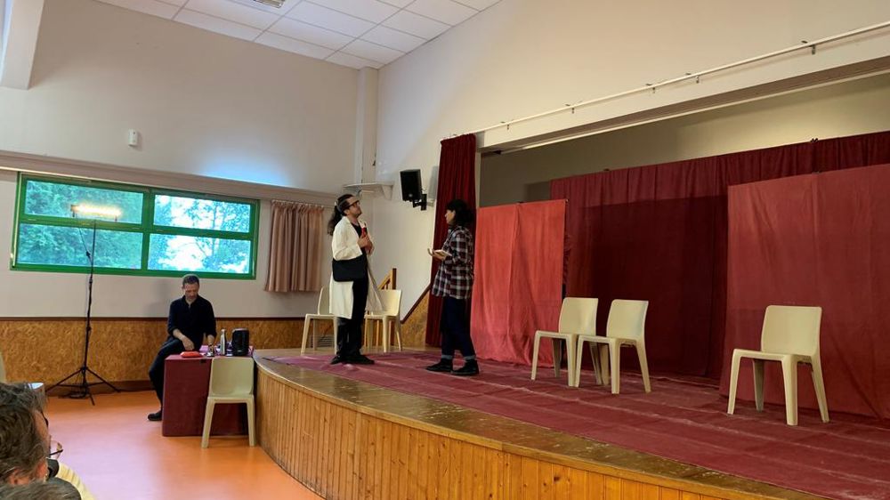 À l’issue de la pièce, les spectateurs ont été invités à monter sur les planches et à rejouer une scène avec les comédiens. Certains se sont prêtés au jeu. Il s’agissait de proposer une solution face à une situation présentée précédemment dans la pièce. Ils ont notamment échafaudé deux scénarios sur l’attitude à adopter face à des citadins venus s’installer à la campagne et particulièrement hostiles aux agriculteurs.