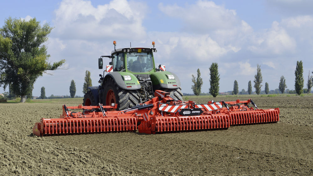Du côté des pièces travaillantes, Maschio Gaspardo reprend les caractéristiques historiques de la marque avec 4 rotors au mètre, pour un total de 80 dents sur la machine. La transmission latérale est assurée par des cardans spéciaux à triple extension, et est effectuée par 4 boîtes de vitesses avec refroidissement. Les roulements des rouleaux sont blindés et offrent une durée de vie trois fois supérieure à celle des roulements précédents.