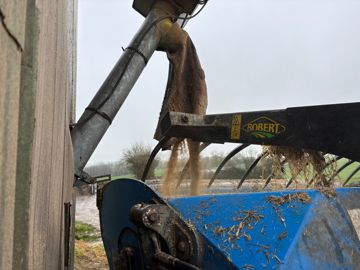 « À cet effet, je complétais manuellement chaque ration avec des seaux de soja, de céréales, de colza, de corn gluten feed ou bien de pulpe de betterave sèche, en fonction des lots d’animaux. Ça représentait jusqu’à 500 kg d’aliments chargés par jour dans le godet mélangeur. C’était d’autant plus dur que le bord de ce dernier est relativement haut, cela m’obligeait à vider les seaux largement au-dessus de mes épaules. »