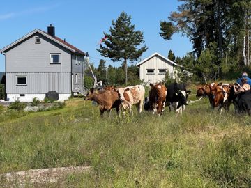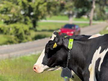 Les colliers des vaches d’Ingvild Westby Mehren et son mari Bjørn Westby ressemblent davantage à une cloche. Dans cette ferme acquise par le grand-père de Bjørn grâce à l’or qu’il avait trouvé dans le Yukon (Canada), les éleveurs ont adopté le système du pionnier Nofence.