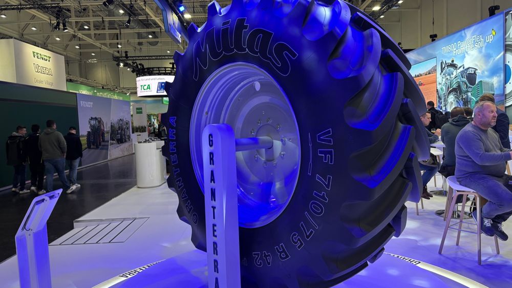 Le constructeur de pneus Mitas a fait le déplacement sur Agritechnica 2025 avec son dernier né, le pneu agricole Granterra. Ce dernier est doté de la technologie VF PFO (Very High Flexion, Pressure Field Operation). Il est conçu pour se déformer et donc s’adapter au travail demandé.