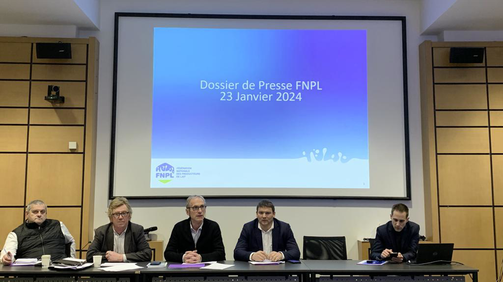 « Quand un éleveur ne connaît pas le prix du lait de janvier alors que cela fait vingt jours qu’il le livre, quelle visibilité a-t-il ? » s’insurge Yohann Barbe, trésorier de la Fédération nationale des producteurs de lait (FNPL) lors d’une conférence de presse à Paris le 23 janvier 2024.