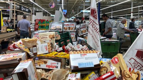 Leurs tracteurs garés sur le parking, les agriculteurs poussent chariots et porte palettes à la recherche des articles pour lesquelles la molécule a pu être utilisée lors de la culture. Les références s’entassent au milieu du magasin : Nutella et la quasi-totalité des pâtes à tartiner, mais aussi des biscuits Lu ou Delacre, des friandises M & M’s, Kinder ou Maltesers ou encore des tablettes de chocolat Nestlé ou Côte d'or.