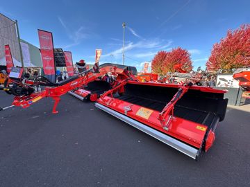 Kuhn présente en avant-première la génération 102 de son andaineur à tapis Merge Maxx. Le modèle exposé sur le Sommet de l’élevage était le 952, qui peut ramasser sur une largeur de 9,50 m.