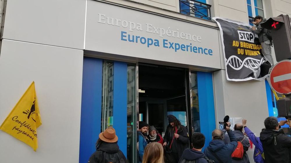 Des membres de la Confédération paysanne et de plusieurs organisations notamment écologistes ont organisé le mercredi 13 décembre 2023 une occupation surprise des locaux d’Europa Expérience à Paris, pour protester contre la régulation de « nouveaux OGM » proposée par la Commission européenne. Arrivés vers 13 heures devant cet espace interactif dédié à l’Europe, ils ont installé sur sa façade des banderoles sur lesquelles on pouvait lire « Stop au brevetage du vivant » ou « Non aux OGM », selon des journalistes de l’AFP sur place.