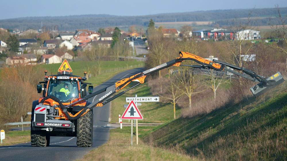 Noremat complète sa gamme de faucheuse-débroussailleuse par le haut en introduisant la Delta 97 T. Cette machine, composée de trois bras, affiche une portée latérale de 9,70 m et une portée verticale de 11,80 m. Une fois repliée, la Delta 97 T propose une hauteur de transport de 4 m et une longueur de 2,30 m.