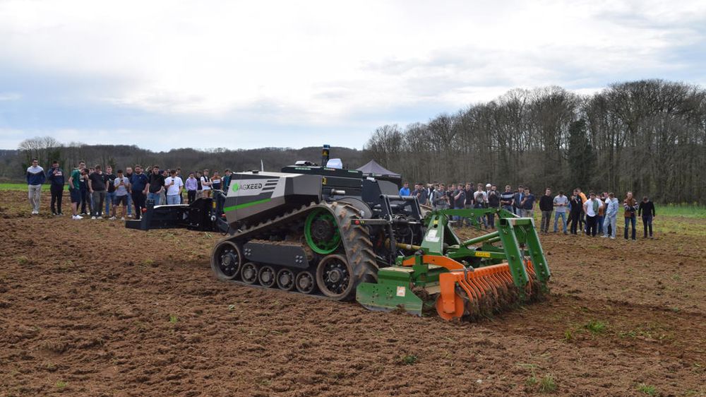 Téléphone en main, la majorité des élèves filment le tracteur sans chauffeur au travail. Séduits ou pas, une chose est sûre, aucun ne reste indifférent ! Ce 20 mars 2024, soixante-dix élèves des filières des bac pro agroéquipement, BTS GEA (1) et licence GTEA (2) du lycée agricole de la Germinière à Rouillon, dans la Sarthe, ont assisté à un chantier de déchaumage réalisé par l’AgBot 5.115T2, le robot développé par AgXeed. L’occasion pour ces futurs chauffeurs et mécaniciens agricoles d’approcher cet outil high-tech encore rare en France.