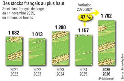 Cette hausse de la production entraîne un stock final estimé à 1,7 Mt, soit en hausse de 47 % par rapport à la campagne précédente.