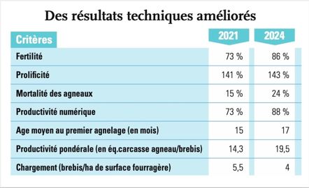 L’âge moyen au premier agnelage a augmenté avec 17 mois contre 15 mois. « Mais cela m’a permis d’améliorer la fertilité des agnelles, explique l’exploitant. Si les jeunes femelles n’ont pas atteint un an et un poids minimum à la mise en lutte, les performances sont très dégradées par la suite ». Ce qui nuit à la fois aux résultats techniques et à l’empreinte environnementale.