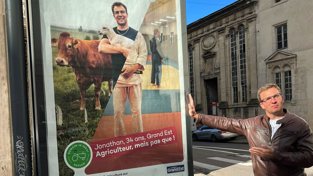 Alors, quand les JA Grand Est ont cherché l’an dernier des profils intéressants pour leur campagne de communication intitulé « Agriculteurs mais pas que ! », Jonathan s’est proposé. « L’objectif était de montrer que les agriculteurs ont aussi des loisirs, des passions, qu’ils ne vivent pas en circuit fermé » précise-t-il. À la fin de 2023, sa photo, mi-judoka, mi-paysan, était affichée en grand format dans une rue de Nancy. « Certains amis ont fait le détour pour aller la voir, s’amuse Jonathan. France Bleu, France 3 sont venus m’interviewer. Mais c’est surtout sur les réseaux sociaux qu’il y a eu beaucoup de réactions, positives, des félicitations. Je n’ai pas l’habitude de me mettre en avant. Mon père, qui a créé l’exploitation de toutes pièces après avoir été restaurateur, m’a appris qu’il fallait faire ce métier avec humilité et courage, mais surtout en sachant aller vers les autres. Dans ce sens, cette campagne de communication avait tout bon ! »