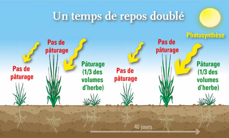 « Nous adaptons au quotidien les changements, selon la météo et le stade de végétation des plantes, et non plus selon la hauteur. Nous revenions sur la parcelle au bout de 18-20 jours. Maintenant, c’est plutôt autour de 38-40 jours », souligne Christophe. Étienne Gautier rappelle que le surpâturage ne résulte pas d’un chargement trop élevé, mais bien d’une durée excessive sur un paddock. Finalement, c’est uneforme de transfert de stockage, avec une herbe sur pieds plutôt que gardée en bâtiments ou silos.