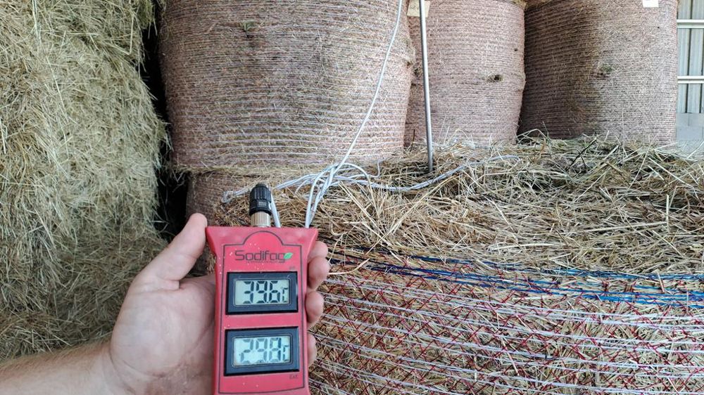 Qui dit foin récolté humide, dit risque d’échauffement des balles rondes et par conséquent risque d’incendie. « Si vous avez des doutes sur le taux de matière sèche de certaines bottes, il est prudent d’en mesurer la température à l’aide d’une sonde thermique », conseille le Centre interrégional d’information et de recherche en production ovine (Ciirpo) dans sa lettre technique mensuelle publiée le 18 juillet 2024 . Différents modèles sont disponibles à des prix qui commencent aux environs de 100 €.