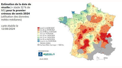 Depuis la première publication le 1er août 2024, les températures ont dépassé les normales de saison sur tout le territoire, « ce qui a accéléré la maturité des maïs ». Conséquence : « une anticipation moyenne de 4 jours, pouvant aller jusqu’à plus de 10 jours sur certains secteurs, des dates prévisionnelles » initiales de récolte.