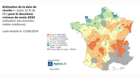 « On constate la même évolution quelle que soit la date de semis, mais il est important de noter que les récoltes s’étaleront sur plusieurs mois et se termineront tardivement, après le 15 octobre, pour les secteurs les plus froids et/ou les semis tardifs de juin », prévient l’institut.