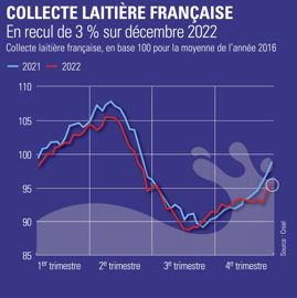Le recul de la collecte laitière française en 2022, de l’ordre de 1 % par rapport à 2021, pourrait avoir un impact positif sur les négociations. « Les industriels expliquent que la fidélisation des producteurs et le maintien de l'approvisionnement deviennent stratégiques, note Jean-Marc Chaumet. Cela devrait maintenir une pression à la hausse sur les prix, mais difficile de dire s’ils seront à la hauteur des attentes des agriculteurs. »