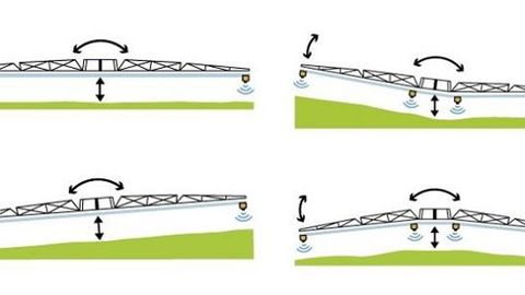 À partir de ce constat scientifique, il fallait donc travailler sur un système permettant de se rapprocher au maximum de la cible tout en étant capable d’opérer à vitesse élevée avec des rampes dépassant parfois les 36 m. Le parti pris a été de découpler totalement la rampe du pulvérisateur afin que celle-ci soit stable naturellement et libre de ses mouvements. Elle est ensuite guidée en permanence en hauteur, dévers et même géométrie variable (pour la version HORSCH BoomControl Pro) et cela de manière totalement automatisée.