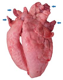 Les lésions, observables à l’abattoir, peuvent être scorées pour quantifier l’importance de la maladie. Dans le cadre du Ceva Lung Program, un programme de surveillance mené à l’échelle mondiale, les contrôles, effectués en France, entre 2021 et 2023, ont révélé 17 % d’élevages fortement atteints.